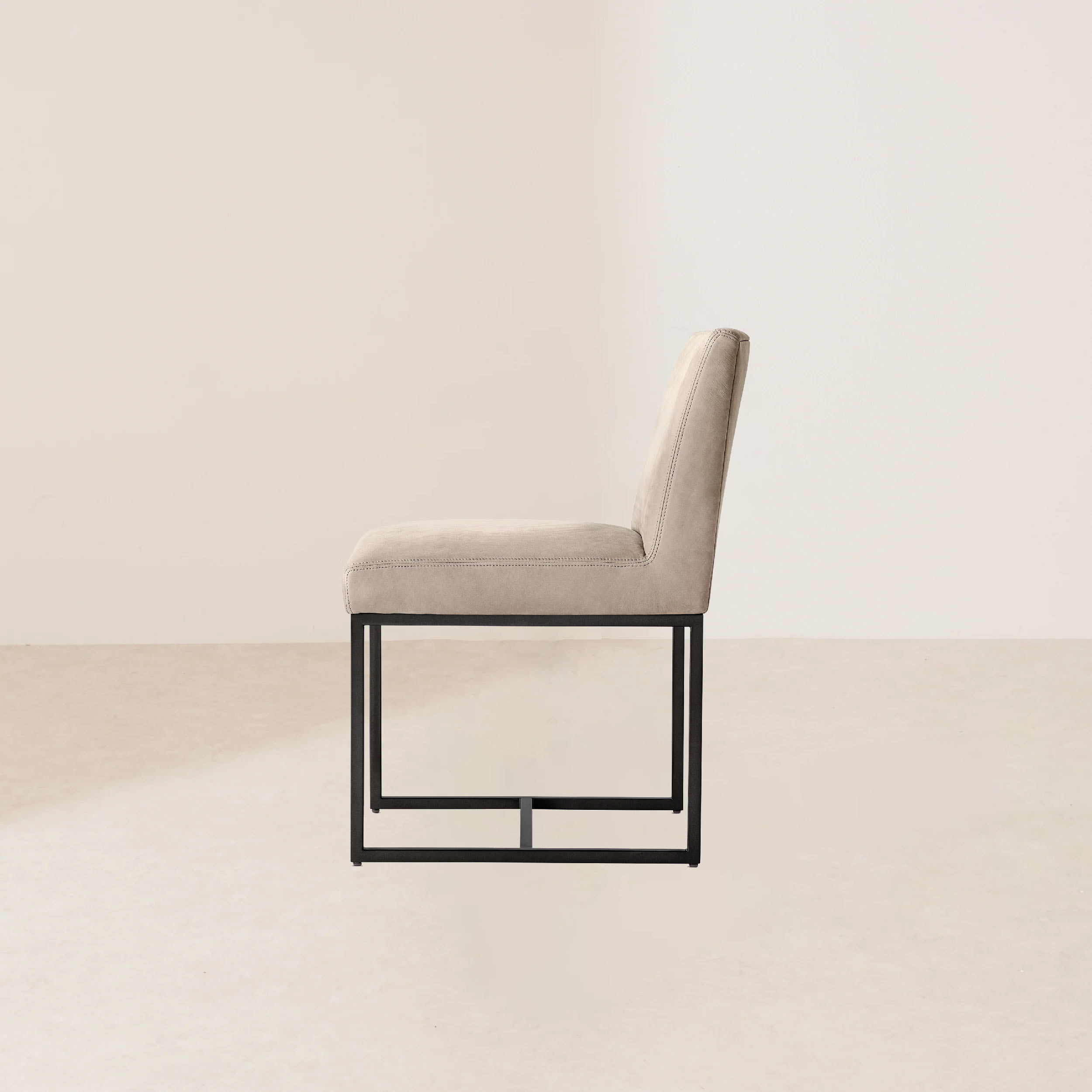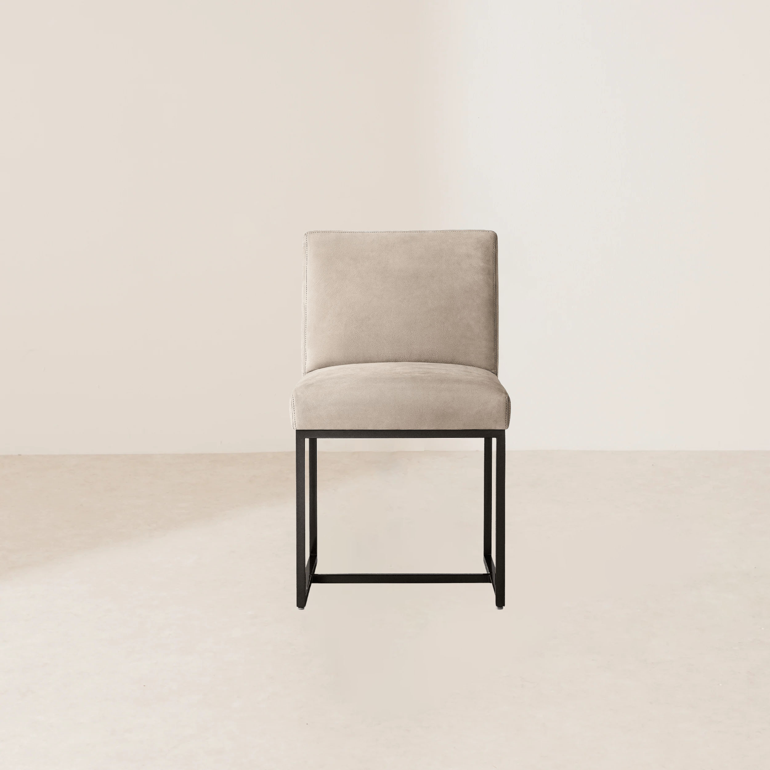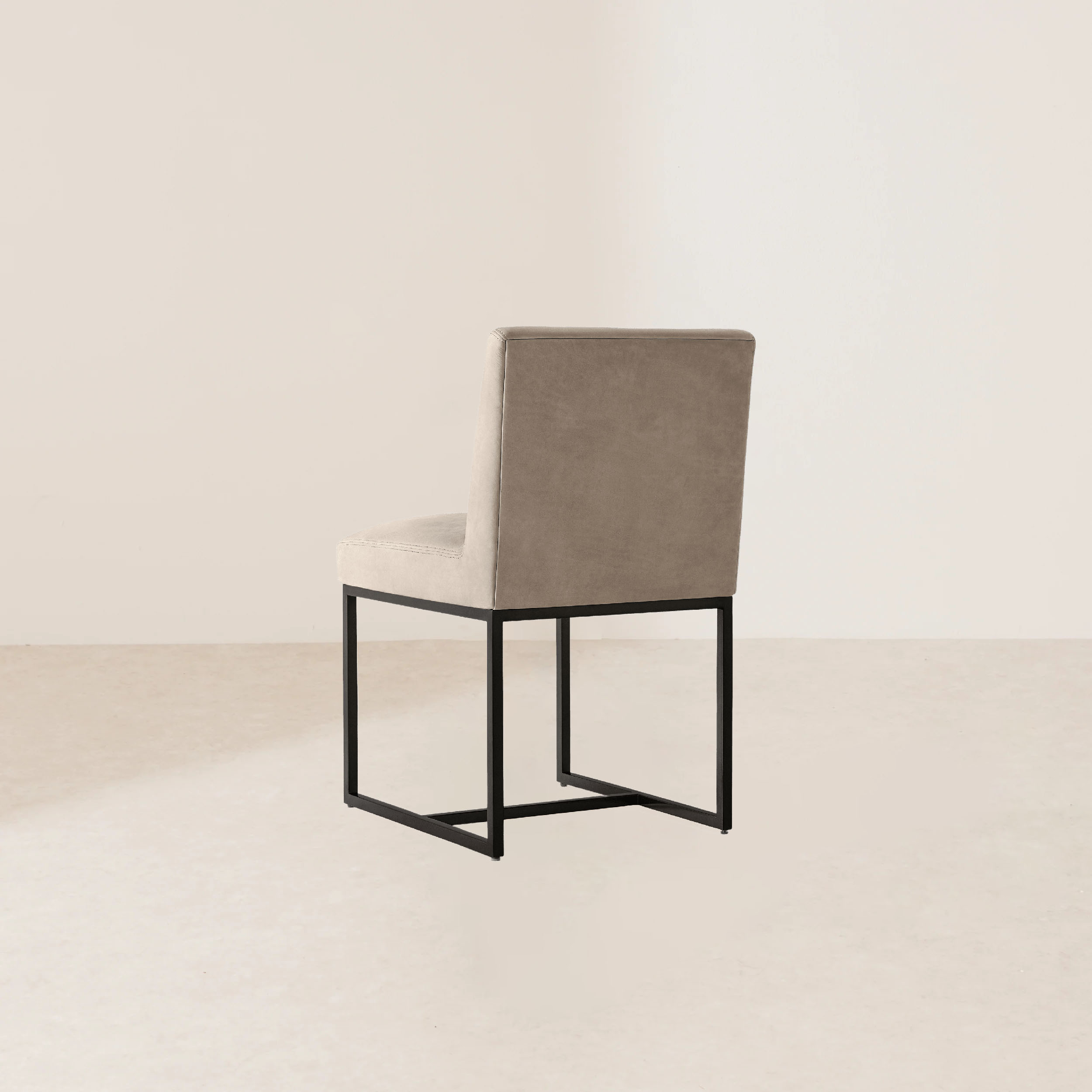Its design is simple and elegant, with a soft and comfortable material that makes it easy to sit for extended periods without feeling tired. The back of the chair is designed ergonomically, providing effective support and fitting the human body curve. The black metal frame adds stability and a modern touch to the chair, making it look more fashionable.